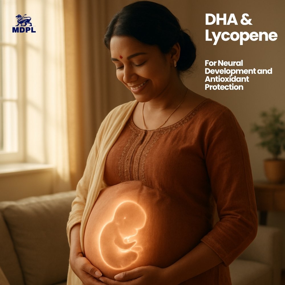 LYCOPENE 3000MCG — ANTIOXIDANT PROTECTION AGAINST IUGR Lycopene at 3000mcg — one of the most potent natural antioxidants — has been studied for its role in reducing oxidative stress during pregnancy, which is a contributing factor to Intrauterine Growth Restriction (IUGR). Lycopene’s antioxidant action helps protect placental function and supports healthy foetal growth.